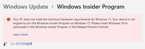 以下の画像のように、Windows11の製品版のインストール後にWindows Insider Programに参加しようとした際に、ハードウェア要求を満たしていないと言うことで弾かれたので、調査しました。 以下の記事で、UTMにWindowsをインストールしておりますので、こちら…